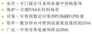 收集血液,唾液等液體樣品于室溫條件下長(zhǎng)時(shí)間保存基因組DNA不降解